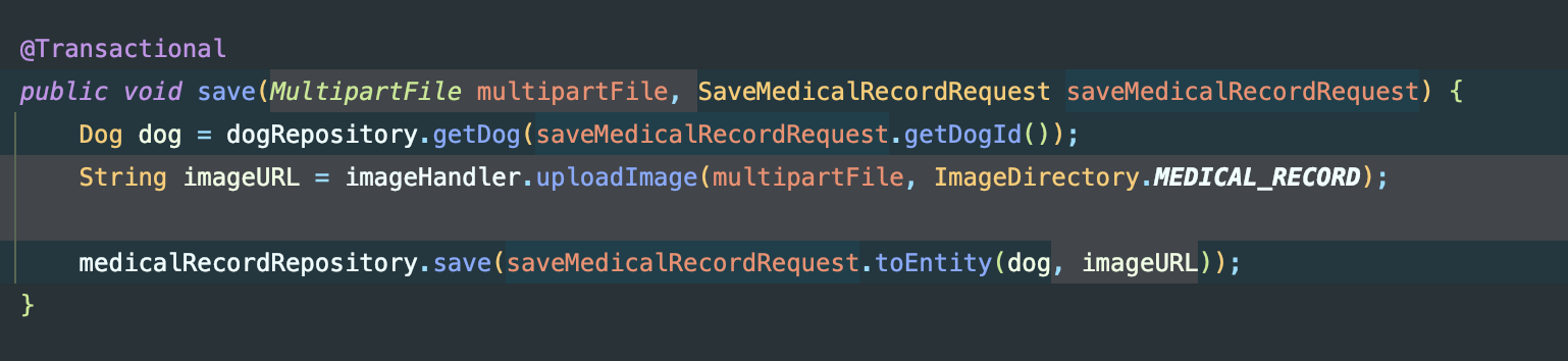 제가 진행하고 있는 사이드 프로젝트는 거의 모든 부분에서 사진을 업로드 하고 있습니다. 반려견의 진료 기록을 진료 내역 이미지와 함께 저장한다고 가정했을 때, 다음과 같은 흐름으로 사진을 업로드 하고 조회할 수 있도록 구현했습니다.