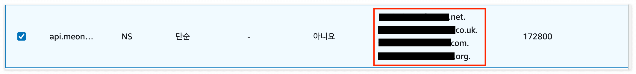- ns-2048.awsdns-64.net는 SOA 레코드를 생성한 NS 서버